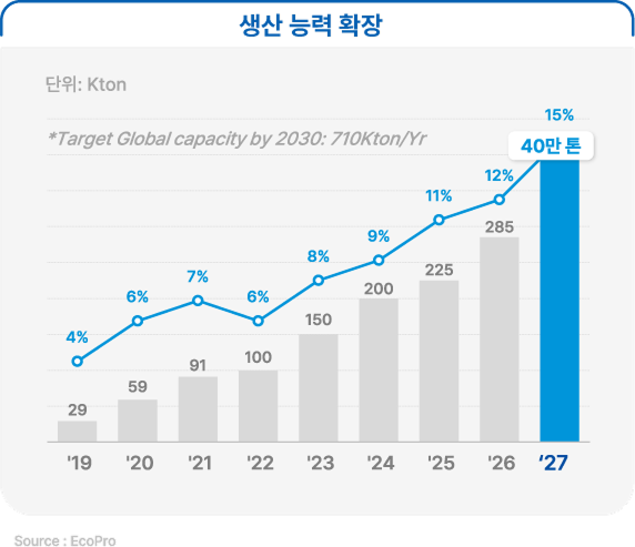 ECOPRO BM은 다양한 고객층과 시장 니즈를 충족시키며 이차전지 핵심소재 분야의 선두 기업으로 우뚝 서기 위해 변함없이 최선을 다할 것을 약속드립니다.