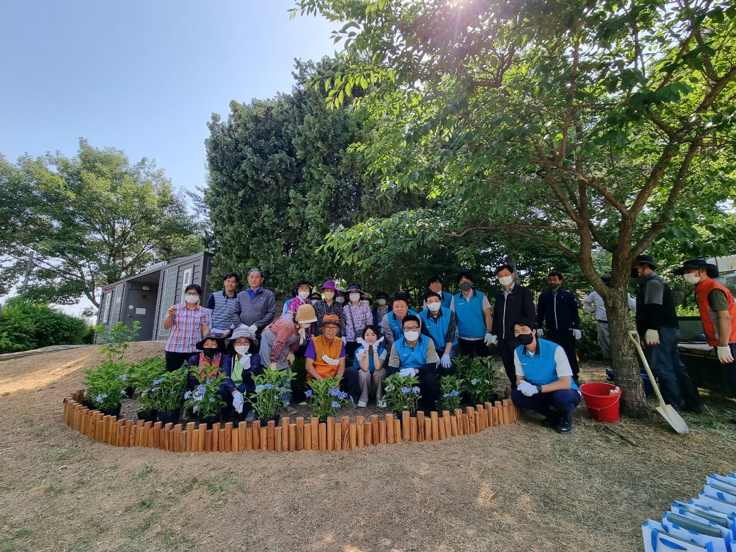 6월 2일, 청주 오창읍에 위치한 송대근린공원에서 지역 주민들과 함께 수국 정원 조성을 위한 꽃 심기 행사에 참여했습니다.