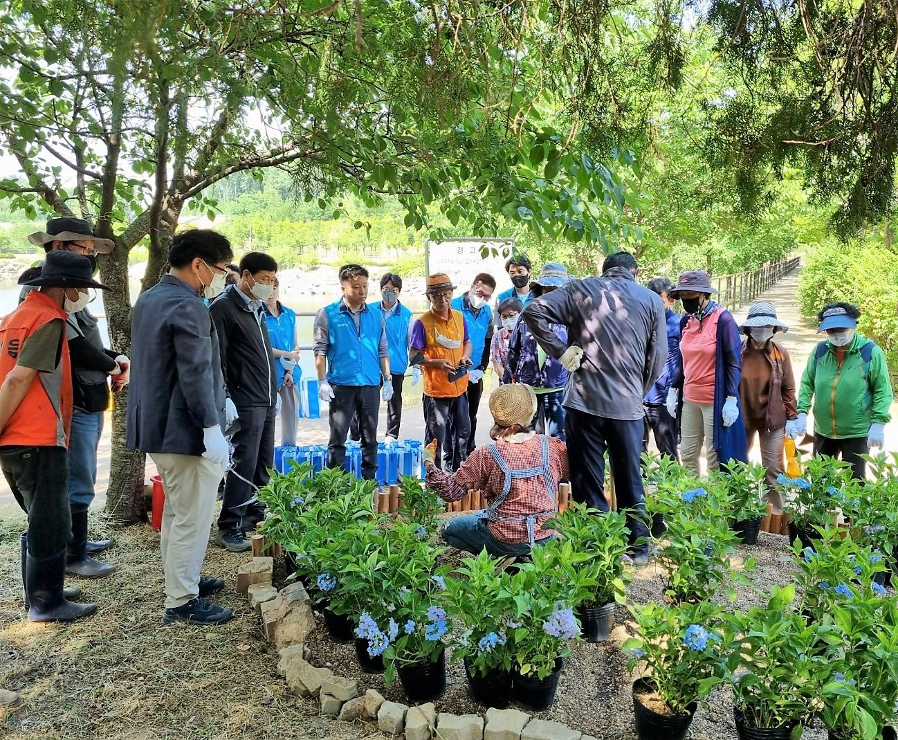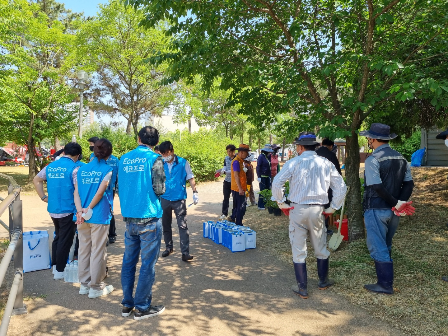 ‘송대근린공원 시민 참여 수국 정원 조성’ 행사에는 에코프로 직원 10여 명과 오창읍사무소 직원 및 지역 주민 20여 명이 함께했으며,