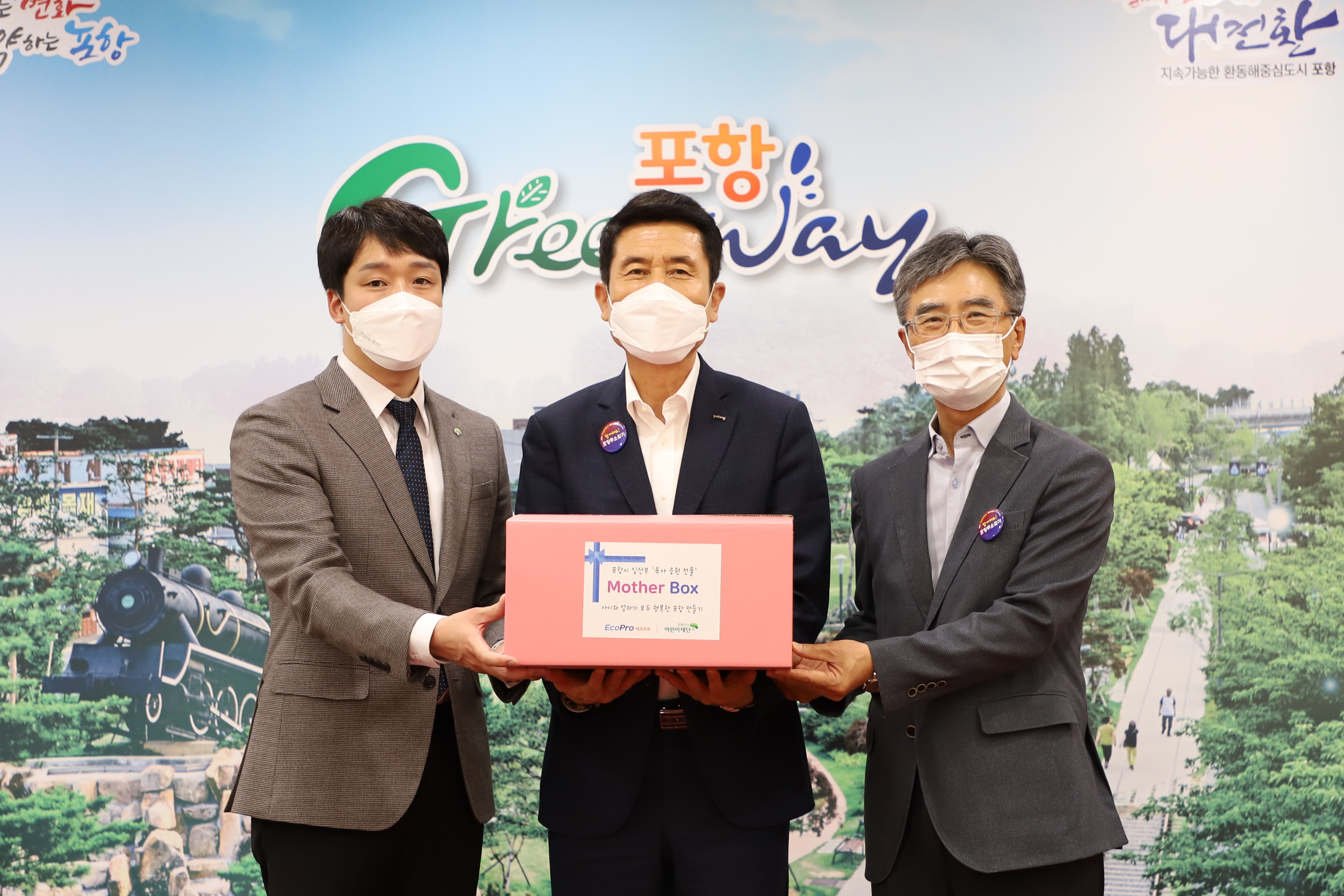 2021년 5월 4일 화요일, 에코프로는 가정의 달을 맞아 포항시의 저소득 계층 임산부를 위해 마더박스 전달식을 진행하였습니다.