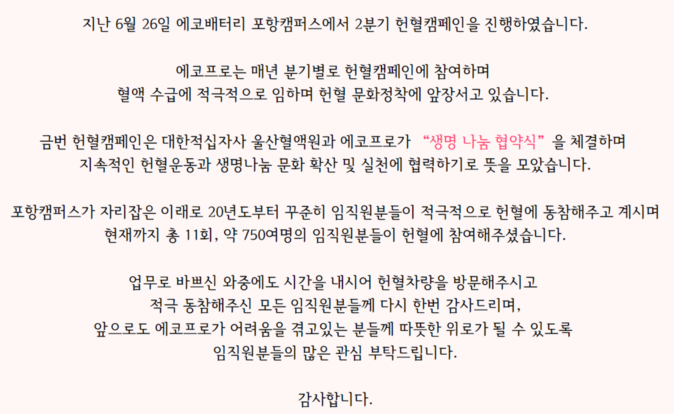 포항캠퍼스 헌혈 캠페인_ 생명나눔단체 협약식(2024.06.26) 글보기